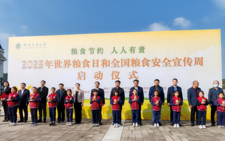 于龙子湖校区中心广场举办河南农业大学2025年世界粮食日和全国粮食安全宣传周启动仪式。