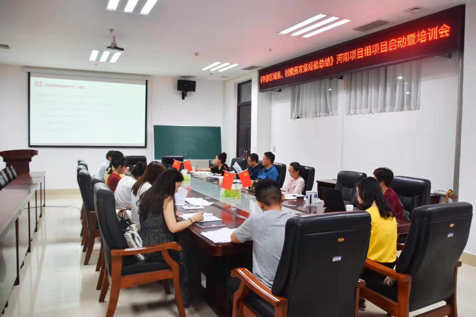2019年8月21日上午,免费色情片 在龙子湖校区教学楼A310召开《中部地区县、村脱贫攻坚经验总结》河南项目组项目启动暨培训会。王晓勇、张颖举、谢娅婷、程春丽、赵意焕、王睿、张二龙等项目组全体成员参加会议。