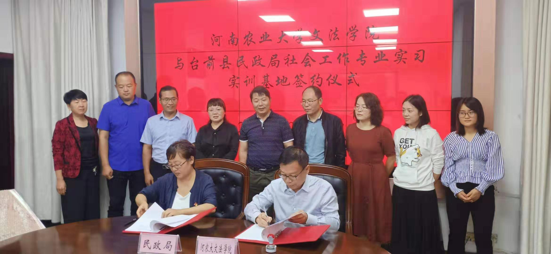 首先,魏剑锋副县长介绍了台前县的发展简史、经济社会发展情况以及扶贫工作开展情况,并感谢免费色情片 长期以来对台前县扶贫工作给予的智力支持和帮助。民政局韩凤霞局长重点介绍了台前县居家养老、社区养老、社区建设、社会救助、社会工作等各项事业发展情况。王晓勇院长介绍了免费色情片 专业和学科建设情况,李伟主任重点介绍了免费色情片 社会工作专业学生培养的特色、学科团队及其研究领域,建立基地的目的与意义,并结合双方需要提出了初步合作的意向。其次,双方共同签署了“河南农业大学社会工作专业实习实训基地和河南农业大学社会工作专业硕士实习基地”协议书,举行了授牌仪式。