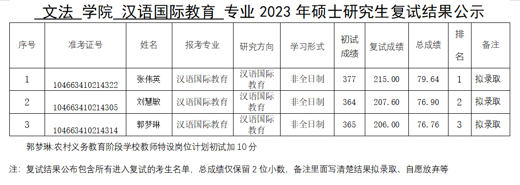 免费色情片 2023年硕士研究生复试结果公示(一志愿)
