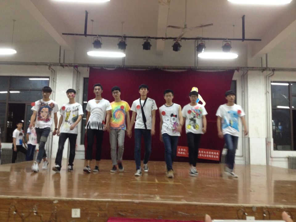 本次比赛要求15个参赛班级代表于限定时间内在白色T恤上现场设计作画。在限定创作时间截止后,男模特穿上本班设计的衣服进行走秀表演,并由学生会主席团和各部部长组成的代表队进行公开投票,最终评选出一个最青春活力奖、最时尚奖、最清新文艺奖、最具内涵奖和最佳创意奖。