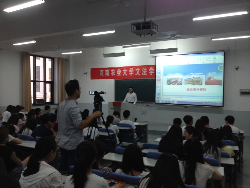 为普及法律知识,提高学生的法律意识,免费色情片 副院长张帅梁于5月24日晚上7:00在龙子湖校区教学楼C202教室为免费色情片 学生作普法知识报告。