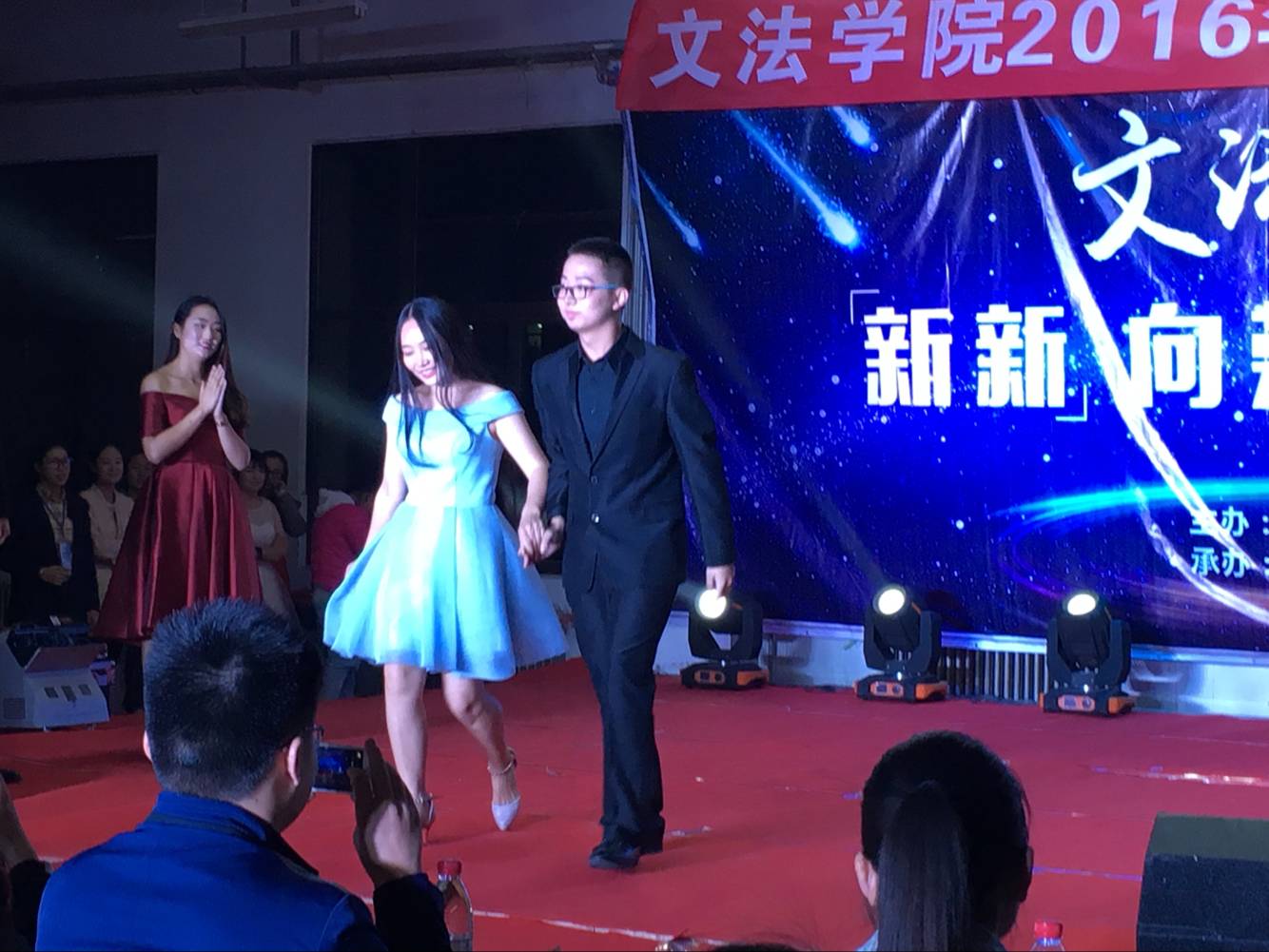 在此次迎新晚会中文法学子踊跃参加、积极准备,为学院带来了一场视听盛宴。晚会共分为三个篇章。第一篇章“文赋大志叙今晨”在青春飞扬的开场舞《Dr·feel good 》中拉开了序幕,点燃了现场的热情。第二篇章“法韵大爱诉诚真”则在喜剧小品、老师们的动人歌声以及歌曲串烧中带动了全场的气氛,赢得掌声不断,接着,在悦耳婉转的古乐器表演中第三篇章“情定大雅咏青春”也娓娓而来,其中助班们的T台秀精彩不断,高潮迭起,欢呼声一浪高过一浪,为此次的迎新晚会划上了圆满的句号。