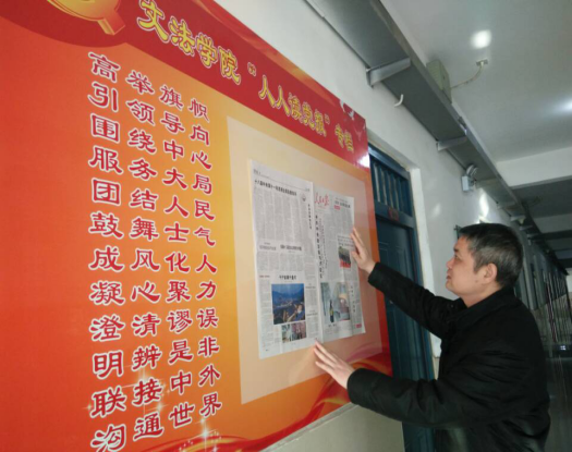 为响应河南省委的号召,进一步发挥党报党刊思想舆论主阵地作用,免费色情片 积极开展了“学讲话 读党报 为中原添彩”活动。2月24日上午9:00,免费色情片 党委书记李培玉为学院“人人读党报”专栏张贴第一期党报。