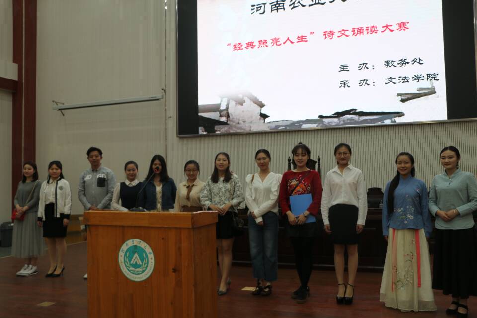 于4月18日下午2:30在教学楼承办了河南农业大学“经典照亮人生”诗文朗诵比赛。