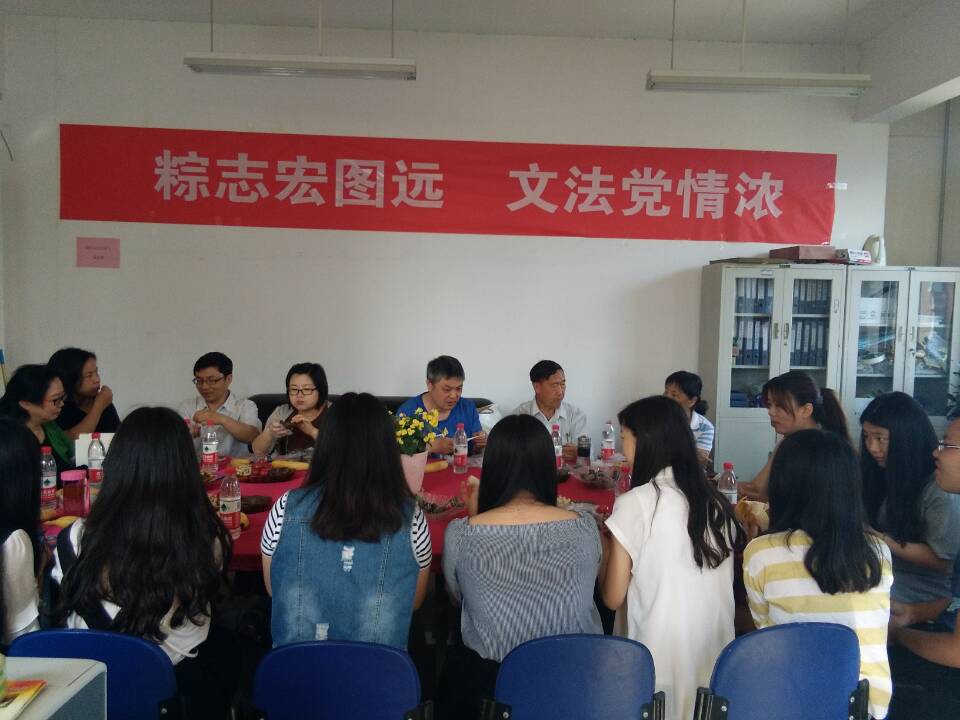 于5月27日上午9:30在紫竹404举办了主题为“粽志宏图远,文法党情浓”的端午茶话会,校关工委秘书长杨明亮、院特邀党建组织员王云、院教学督导吴海峰以及学院班子成员出席本次茶话会,各专业教师代表、团委老师及毕业生学生代表参与本次茶话会。茶话会由院团委书记沈倩茹主持。