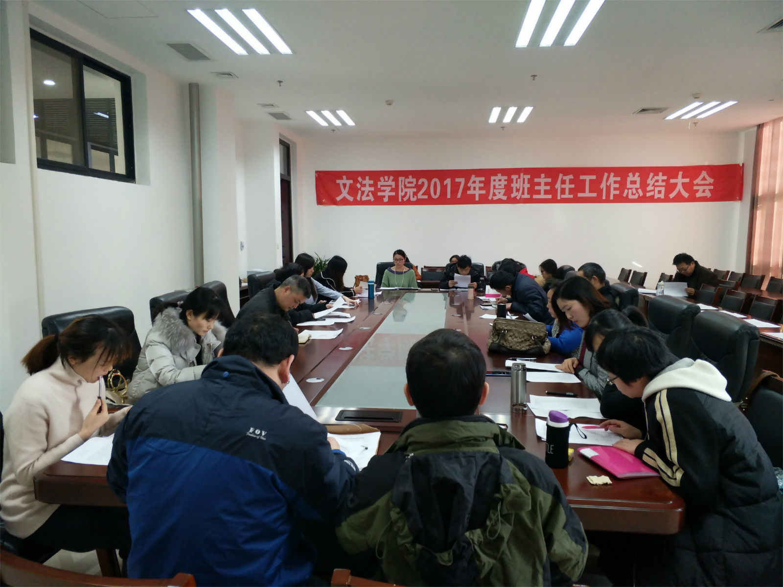 于2018年1月11日下午在繁塔楼A座310室召开全体班主任会议。本次会议由院党委副书记王燕萍主持,院党委书记李培玉和学院全体班主任参与会议。