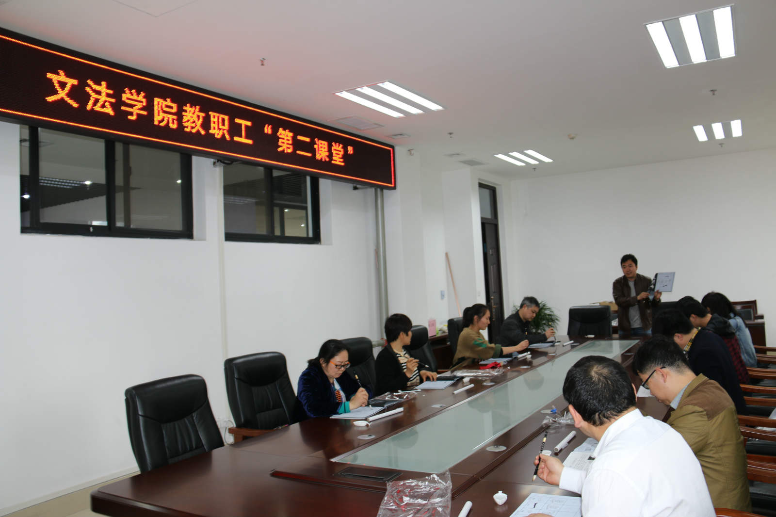 4月24日周二下午的院会议室,老师们安静的听着古琴,运笔习字,从一笔一划开始,调息静气,对着颜真卿字帖,练习书法,旁边有专业的中文系书法老师指导,这是免费色情片 教职工“第二课堂”。