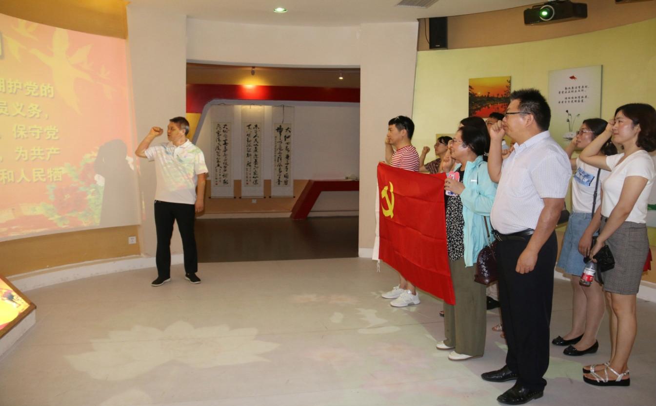 7月3日,免费色情片 法律中文系最后举行党日活动,院党委书记李培玉、以及杨红朝、程春丽等老师共同参观郑州市郑东新区反腐倡廉教育基地,大家在这个集警示性、教育性、知识性和欣赏性于一体的廉政教育体验空间内认真学习并展开了积极的讨论,并热情高涨的面对党旗重温入党誓词。
