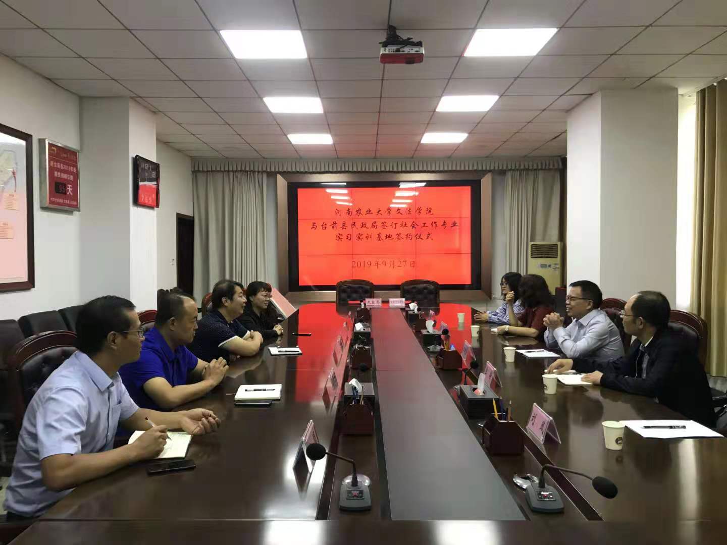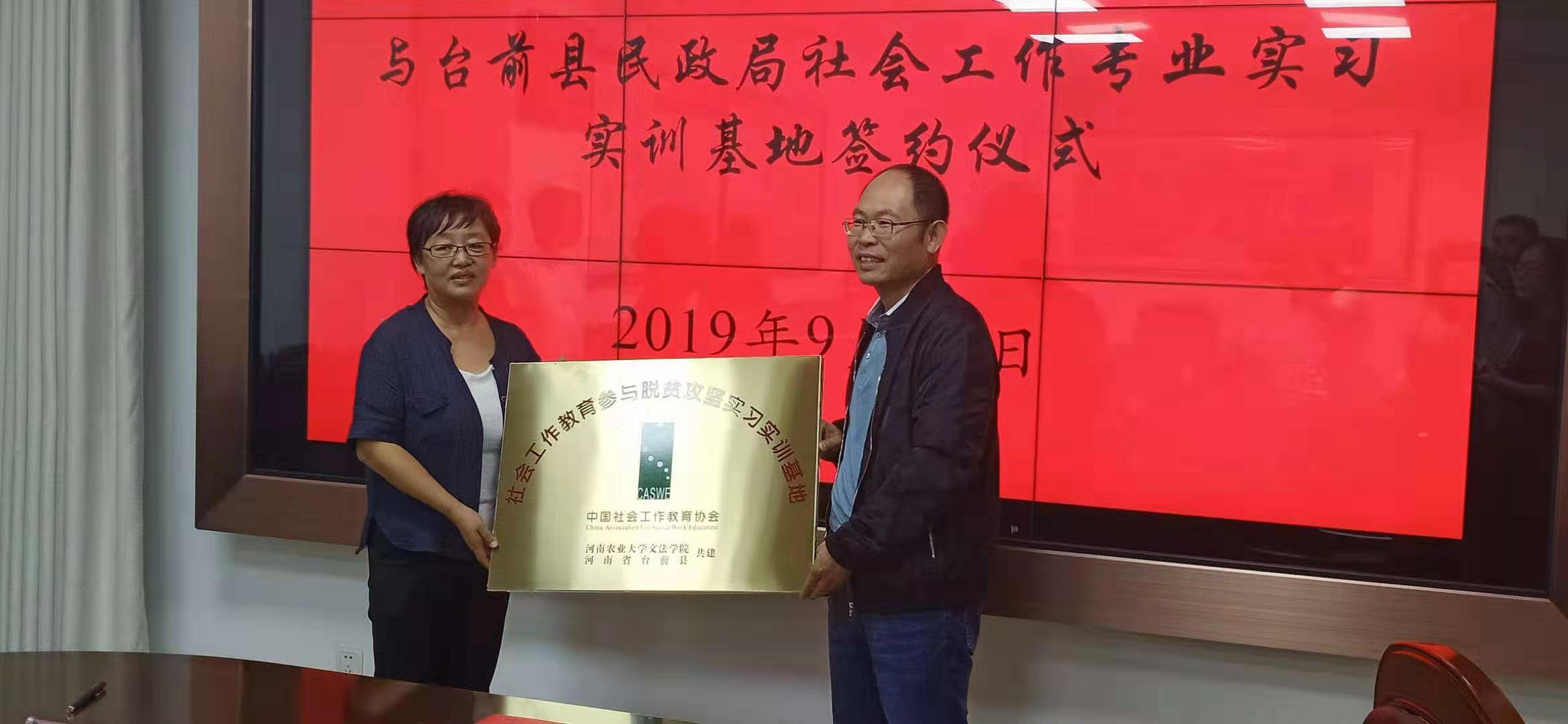 首先,魏剑锋副县长介绍了台前县的发展简史、经济社会发展情况以及扶贫工作开展情况,并感谢免费色情片 长期以来对台前县扶贫工作给予的智力支持和帮助。民政局韩凤霞局长重点介绍了台前县居家养老、社区养老、社区建设、社会救助、社会工作等各项事业发展情况。王晓勇院长介绍了免费色情片 专业和学科建设情况,李伟主任重点介绍了免费色情片 社会工作专业学生培养的特色、学科团队及其研究领域,建立基地的目的与意义,并结合双方需要提出了初步合作的意向。其次,双方共同签署了“河南农业大学社会工作专业实习实训基地和河南农业大学社会工作专业硕士实习基地”协议书,举行了授牌仪式。