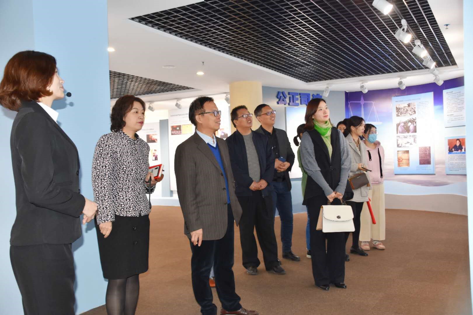 在宋砦法治展览馆讲解员的带领下,大家依次参观了序厅、法治里程碑、科学立法、严格执法、公正司法、全民守法、典型案例、法治人物、法治进程中的宋砦九个展厅,并在展厅前合影留念。宋砦党总支办公室主任、宋砦法治展览馆负责人林文阁在参观时为大家介绍了设立展馆的初衷和构思。
