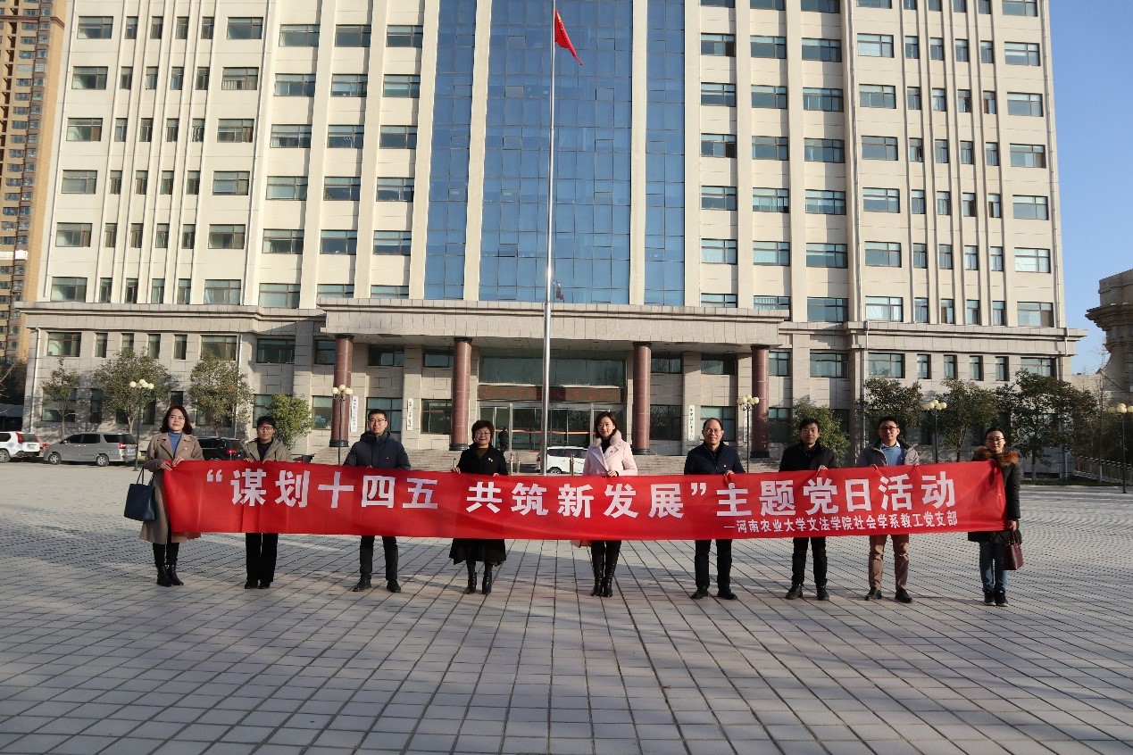12月24日上午,在学院党委书记牛娟的带领下,社会学系教工党支部赴中牟县开展“谋划十四五 共筑新发展”主题党日活动,对中牟县的社会组织建设和社区治理进行座谈和实地调研,与中牟县城乡社区发展治理委员会就如何在“十四五”发展新阶段进行全面合作进行了探讨。