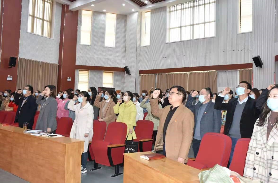 在龙子湖校区模拟法庭举行党史学习教育动员大会。学院全体领导班子及全体教师、学生党员参加本次大会。会议由院党委副书记余果主持。