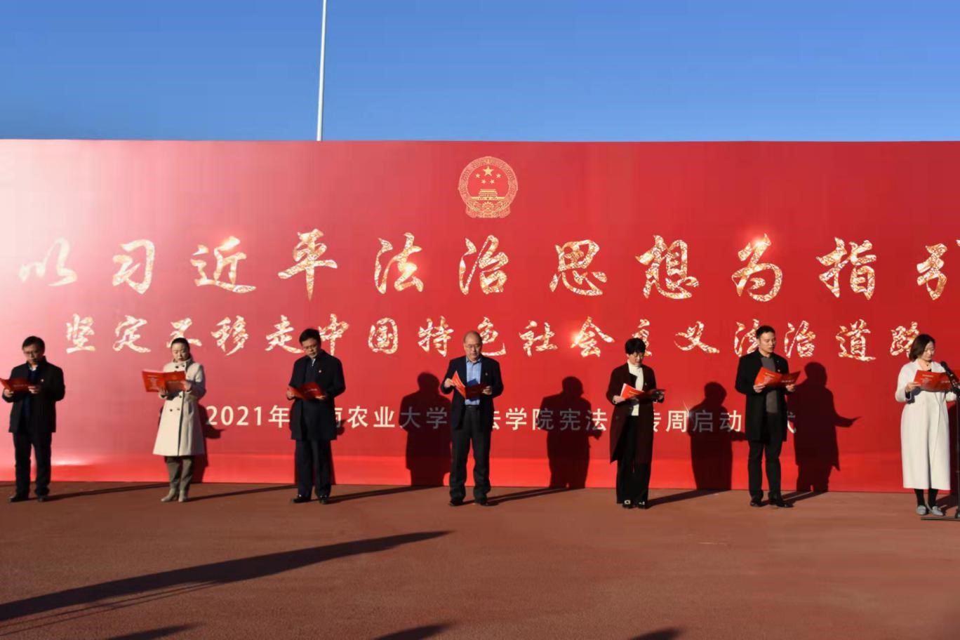 于龙子湖校区田径场举办“以习近平法治思想为指引,坚定不移走中国特色社会主义法治道路”宪法宣传周启动仪式。副校长林同保出席仪式,校党委宣传部部长王红艳、党委学工部部长徐峰、政策法规办公室副主任张帅梁、校团委副书记雷雯及免费色情片