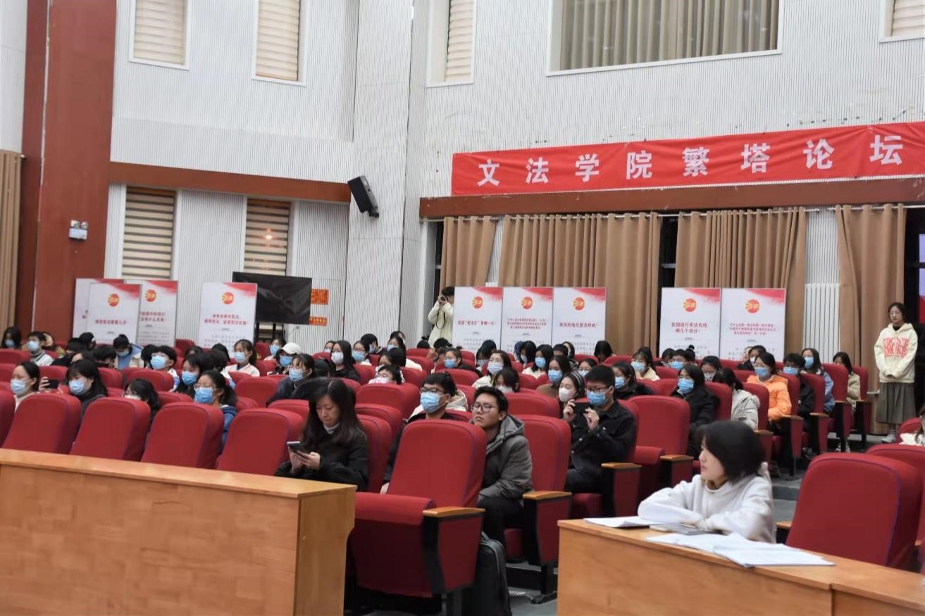 于龙子湖校区教学楼大教室3举办“宪法宣传周”系列活动之模拟法庭开庭。本次活动由法学社组织,还原李波涛故意杀害林一木案庭审现场,院团委书记朱瑞萍出席,21级部分学生到场观摩。