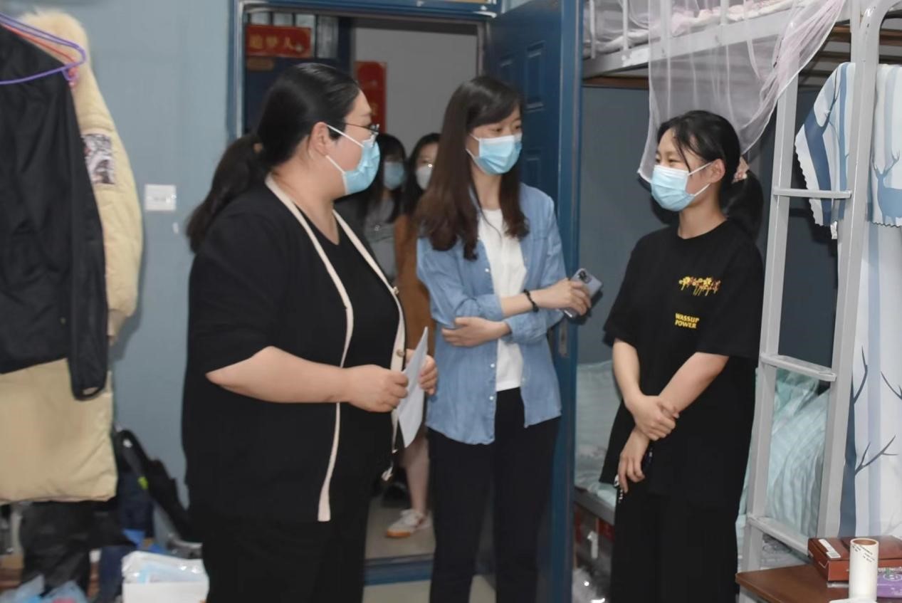 走访过程中,院领导与学生进行亲切交谈,深入了解毕业生的毕业去向,从考研录取情况、就业协议书签订、就业补贴领取等诸多方面作了细致讲解。针对低年级在宿舍上网课的情况,院领导详细了解学生封校后线上授课的学习生活需求,强调同学们要认真学习,注意寝室环境卫生,养成良好的生活习惯,合理规划学习和生活。同时,在走访过程中重点强调了疫情防控相关政策,倡议学生不出校门、不点外卖、不要网购,叮嘱大家严格遵守疫情防控期间学校的各项管理规定,做好科学防护,保持积极向上的健康心态。