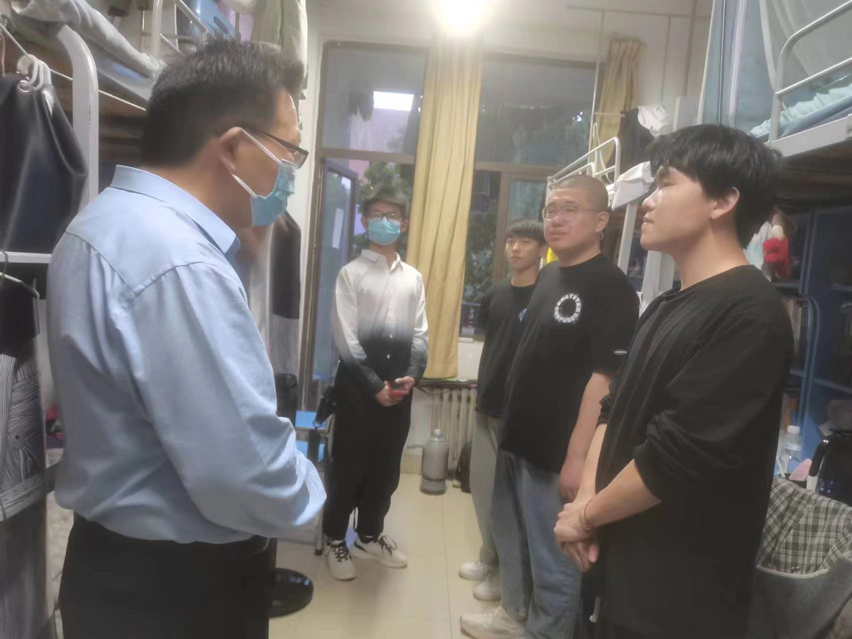 院长王晓勇、院党委副书记余果、副院长杨红朝、副院长李伟及全体团委老师一行深入学生宿舍进行走访。