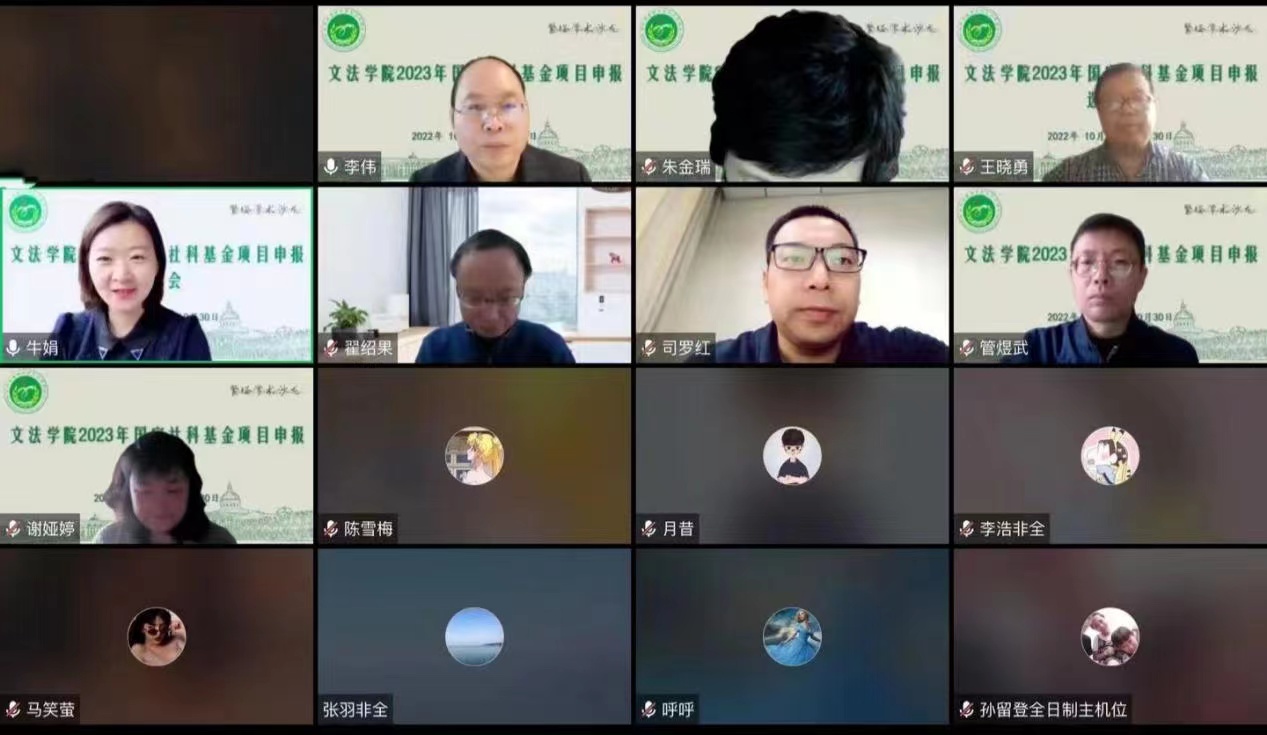 通过线上方式精心组织召开了2023年国家社科基金项目申报选题会。会议特邀河南财经政法大学副校长朱金瑞教授、西北大学公共管理学院副院长翟绍果教授、郑州大学文学院司罗红教授、海南大学法学院谭波教授作为点评嘉宾。免费色情片