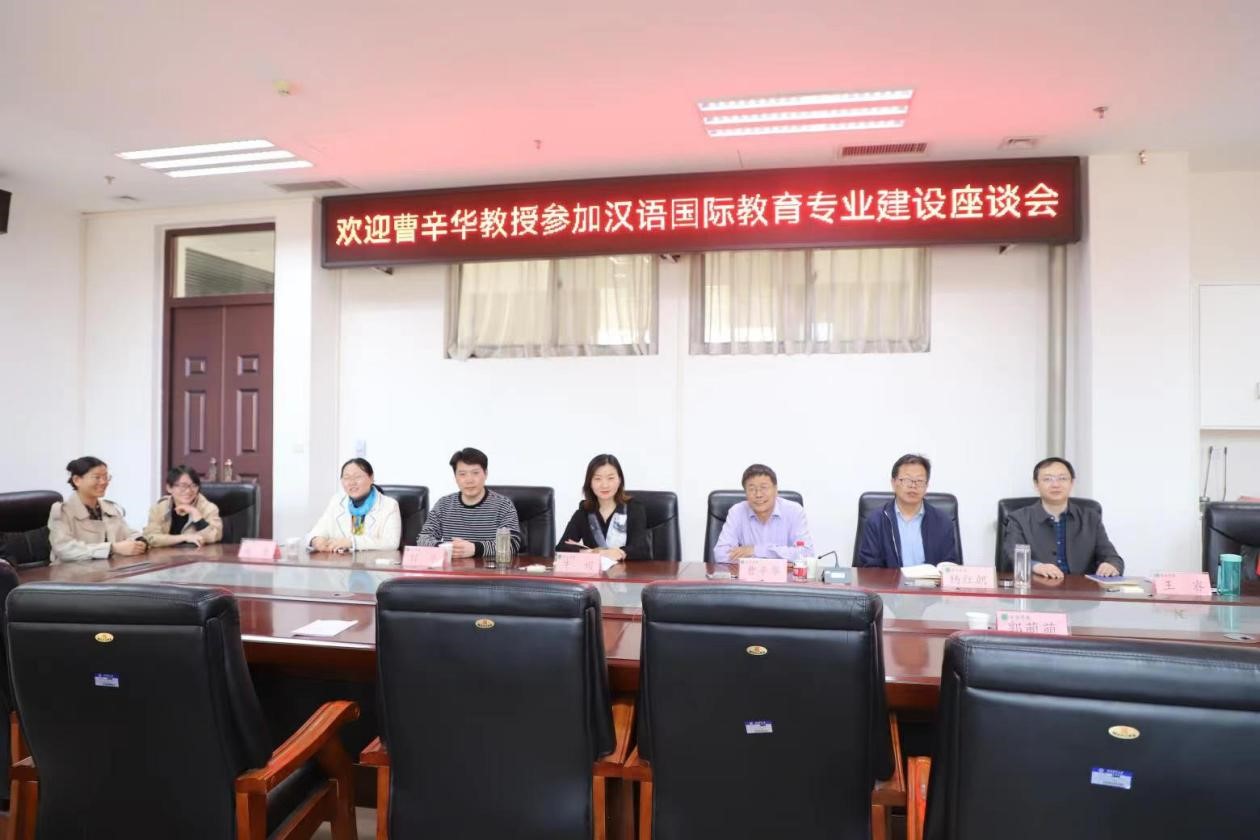 兼职教授、博士生导师曹辛华来院参加汉语国际教育专业建设座谈会。座谈会由院党委书记牛娟主持,副院长杨红朝及汉语言文学专业部分教师参加。