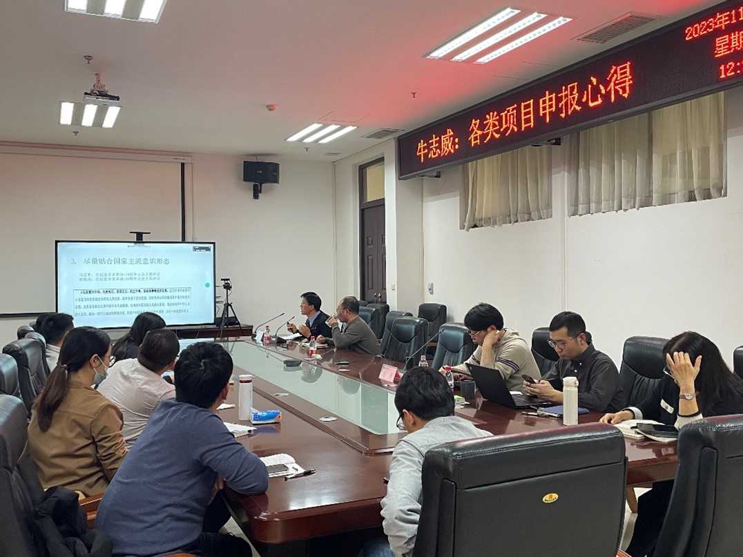 牛志威以《各类项目申请心得》为主题进行分享。他从个人申报项目的经历出发,认为项目申报的重要影响因素包括选题、论证和前期积累的成果。在选题方面,不同学科的选题角度不同,主要是从博士论文及时事热点两个方面来选择;在论证方面,主要从解题、尽量贴合国家主流意识形态、研究现状等方面入手;最后,他讲到申报书需要反复修改精神打磨,尽可能的完善项目书。