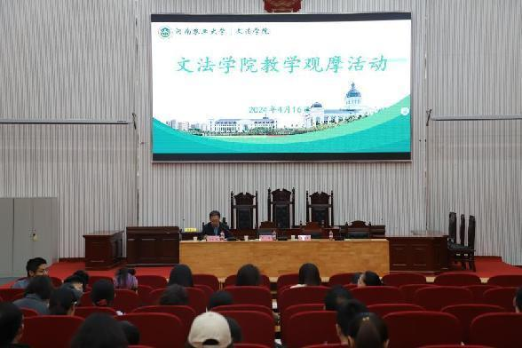 于4月16日下午在模拟法庭举办教学示范观摩活动,活动邀请第三届全国高校教师教学创新大赛三等奖、第四届河南省本科高校教师课堂教学创新大赛特等奖获得者经济与管理学院时心怡老师,河南省教学技能竞赛一等奖获得者法律系赵菊敏老师,河南省教学技能竞赛一等奖获得者社会学系谢娅婷老师进行教学示范。学院全体教师进行了现场观摩,活动由副院长杨红朝主持。