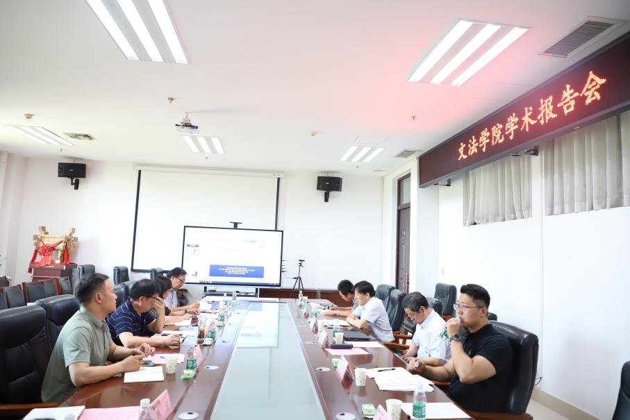 为师生做学术报告。校发展规划处副处长沈蔚、校政策法规办公室副主任张帅梁、院长王晓勇、副院长杨红朝、法律系教师及法律硕士研究生参会。会议由王晓勇主持。