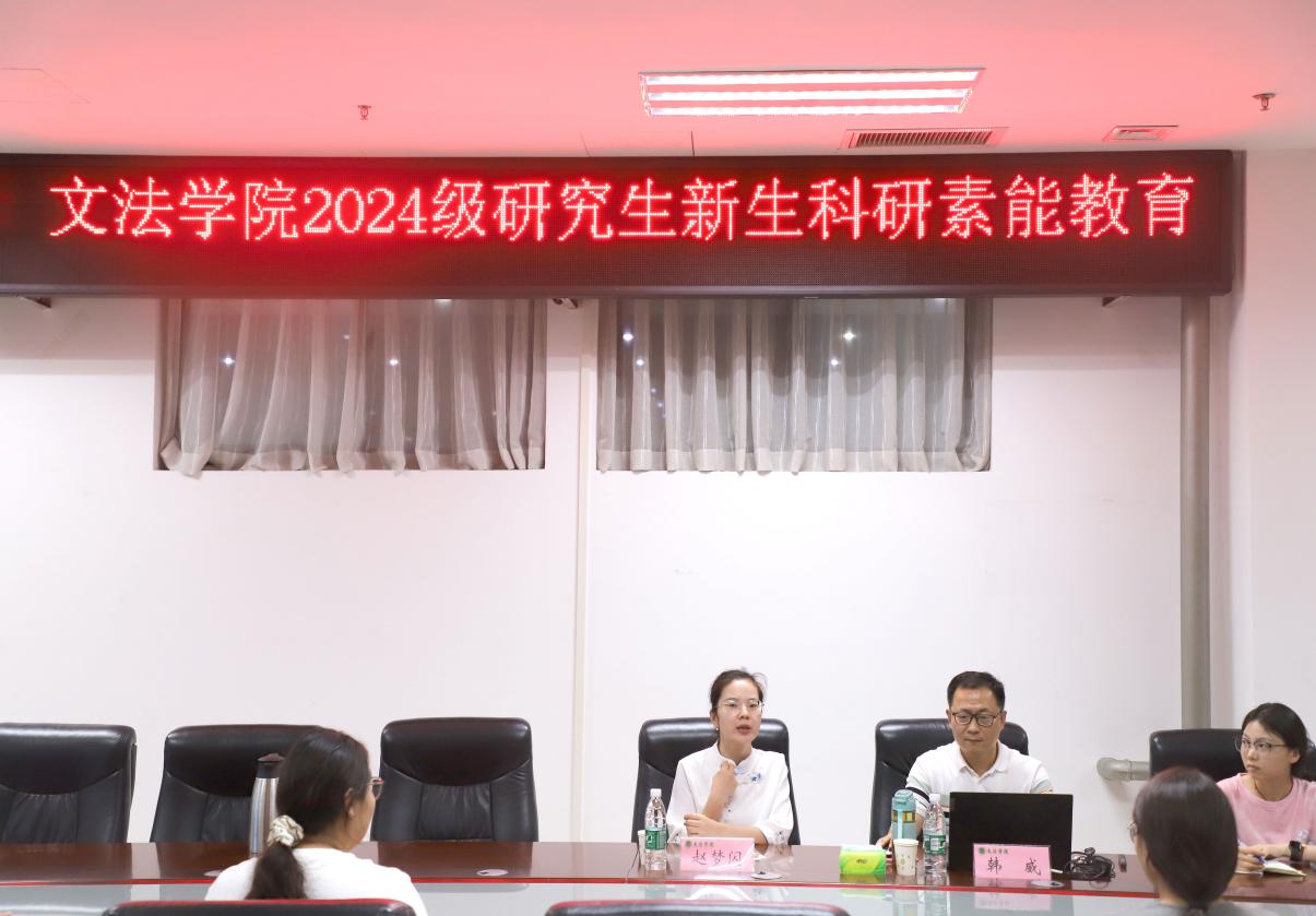 赵梦闪开场致词,向2024级研究生新生介绍韩威老师在学术上的成就,强调科研素能在研究生阶段的重要性,并鼓励同学们珍惜此次学习机会,积极投身于科研实践之中。