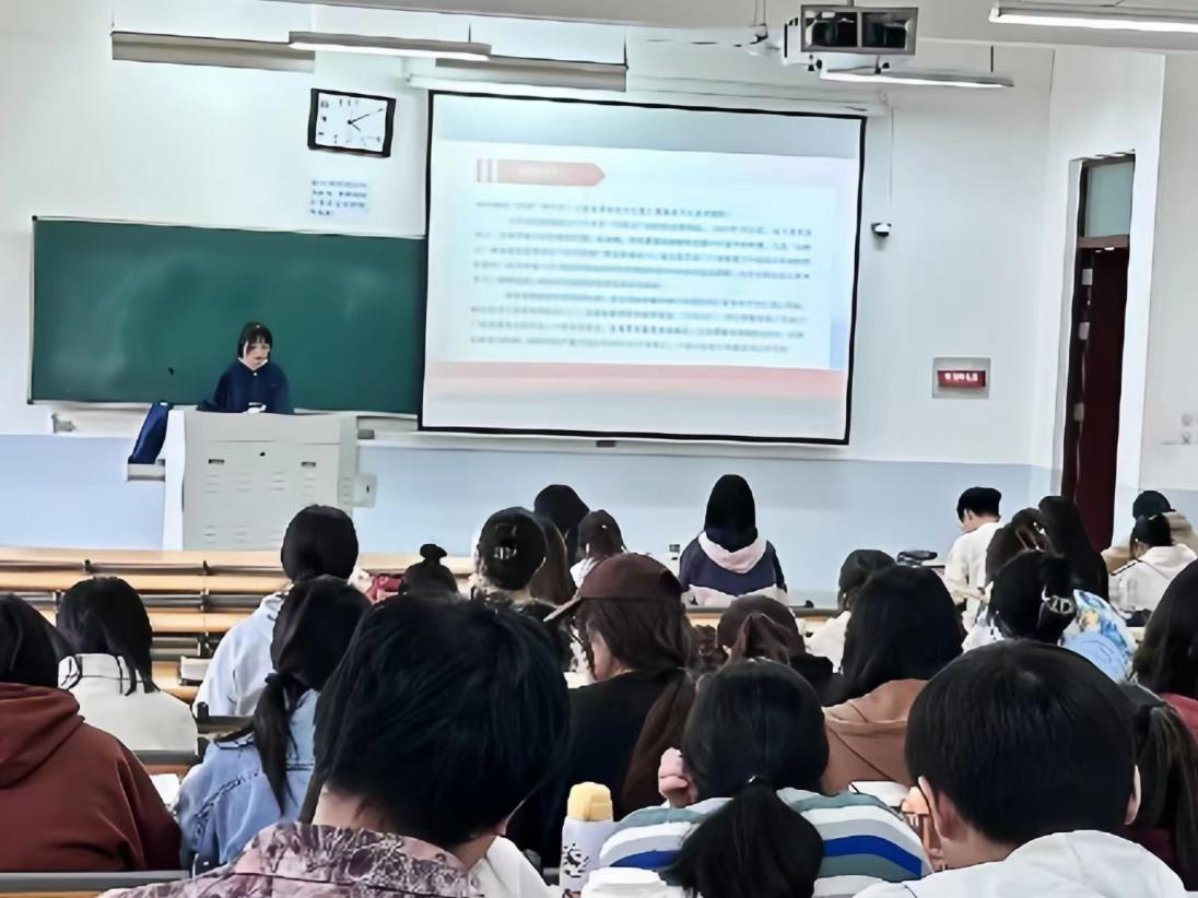在桃李园学生公寓分专业举行了推免生事迹分享报告会,特别邀请2025届法学专业雷娇、行政管理专业贾锦涵、社会工作专业寇洋、汉语国际教育专业万芊芊四名优秀毕业生进行分享,2024级全体本科生参加。