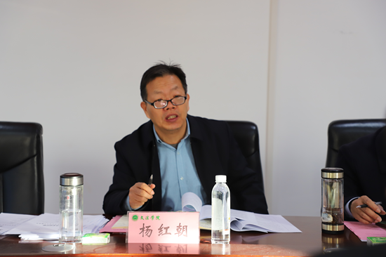 会议开始,杨红朝就毕业论文开题的重要性进行了深入阐述,并强调了规范指导工作的必要性。他强调,毕业论文是学生培养重要的组成部分,而开题答辩则是确保论文质量的关键步骤。因此,规范、专业的指导就成了托举学生学术水平、打磨优质论文的基石。反复强调导师要全程紧盯、全力护航,让学生按时、保质地完成从开题到撰写的每一个关键步骤。