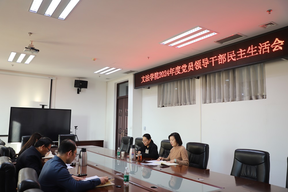 在龙子湖校区教学楼A310召开领导班子2024年度民主生活会,校纪委副书记、党委巡察办主任吴玲玲到会指导,全体处级干部参加民主生活会,会议由院党委书记牛娟主持。