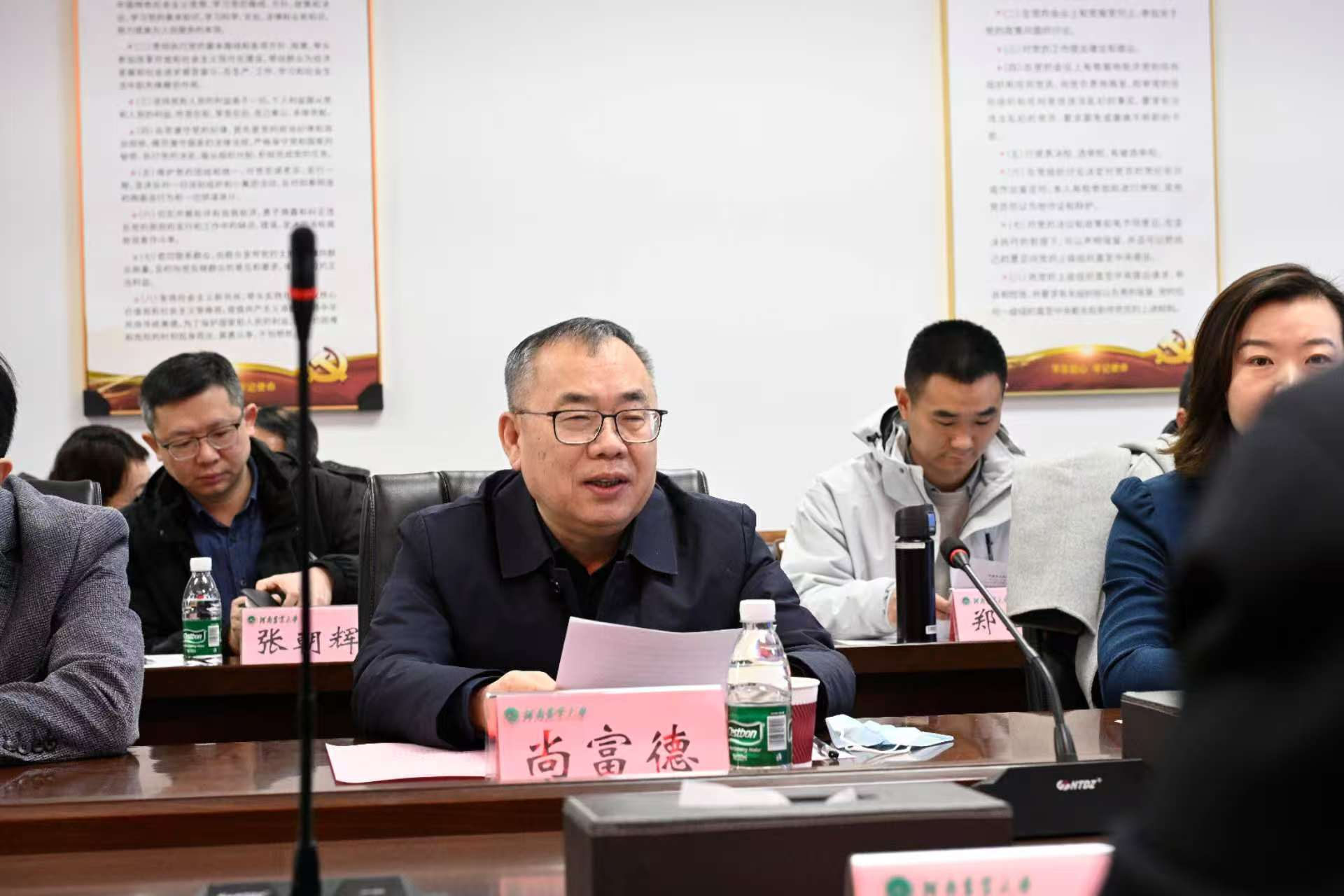 会议开始,尚富德对张合成一行的到来表示欢迎,对河南农业大学的历史、现状和未来发展规划作了简要介绍,并提出希望以河南农业大学与中国农业科学院融合发展为契机,深化双方全方位合作,深入开创“交叉融合再出新”的新局面。张合成介绍了中国农科院乡村振兴学院和中国农业经济学会乡村学分会的成立背景和发展现状,并对乡村振兴学院的人才培养模式进行了简要介绍,提出要构建包含多维度的中国乡村学知识体系,促进中国乡村学研究领域的深化与拓展。胡向东介绍了农经所的研究方向、主要成果及未来发展规划,指出双方可以通过调研、共建项目等方式加强合作交流,促进学科间的融合发展,实现学科资源的共享与优势互补。