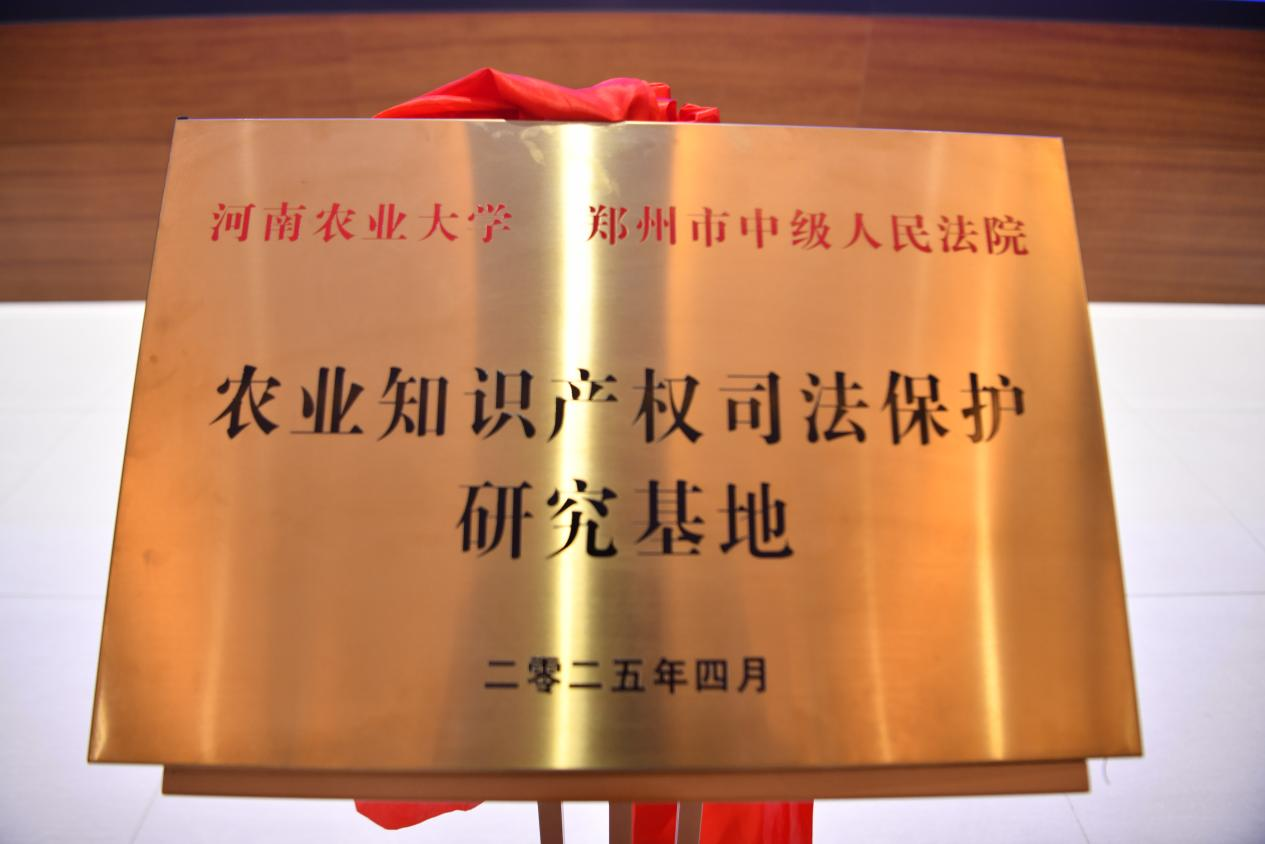 揭牌仪式环节,郑州市中级人民法院院长陈殿福、河南农业大学副校长郭战伟共同为“农业知识产权司法保护研究基地”揭牌,与会嘉宾都见证了这一揭牌仪式,象征院校协同保护农业知识产权的长效机制正式落地。