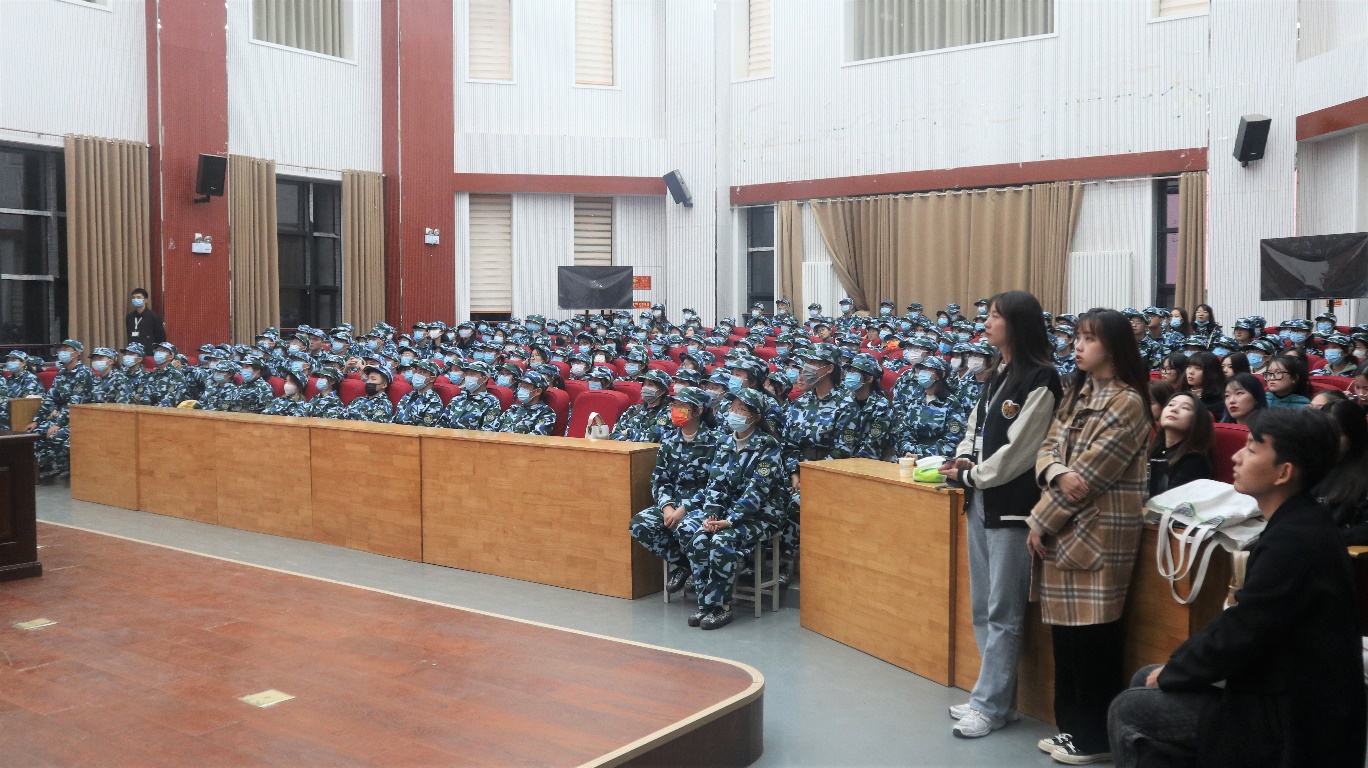 于模拟法庭举行学生组织见面会。21级辅导员赵梦闪、部分学生组织成员及21级全体学生参加见面会。