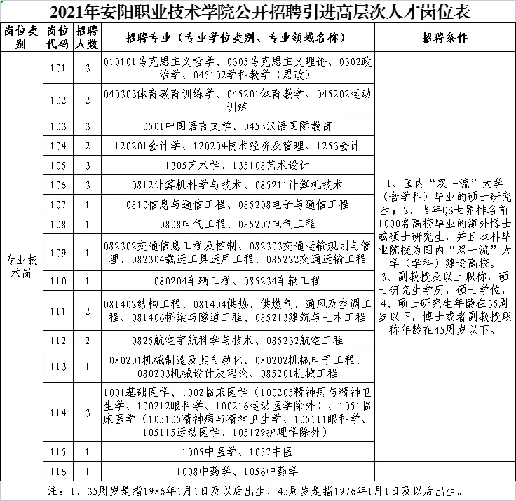 1.《2021年安阳职业技术学院公开招聘引进高层次人才岗位表》