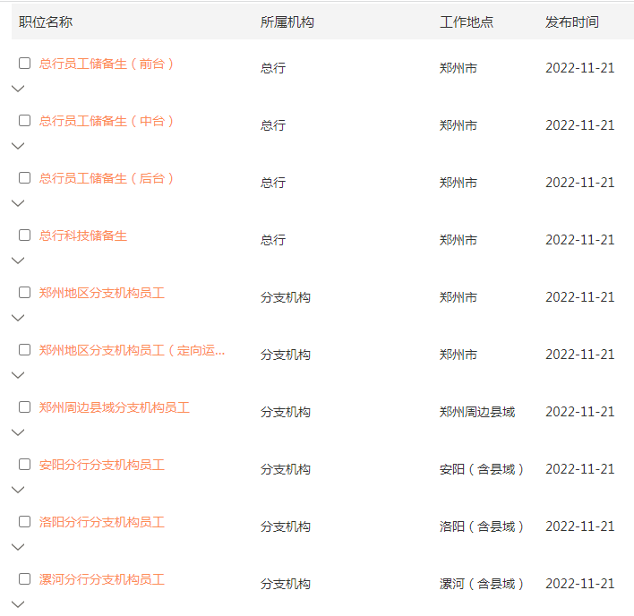2. 总行科技储备生:从事信息系统建设、数据分析、挖掘相关工作,培养精通IT技术且熟悉金融业务的复合型人才。工作地点:郑州地区